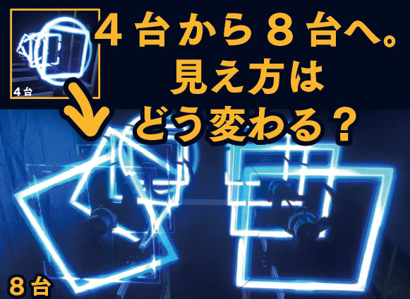 2026.3.19 3DホログラフィックLEDファン65cm8台(2×4)投影テスト【田中印刷所】