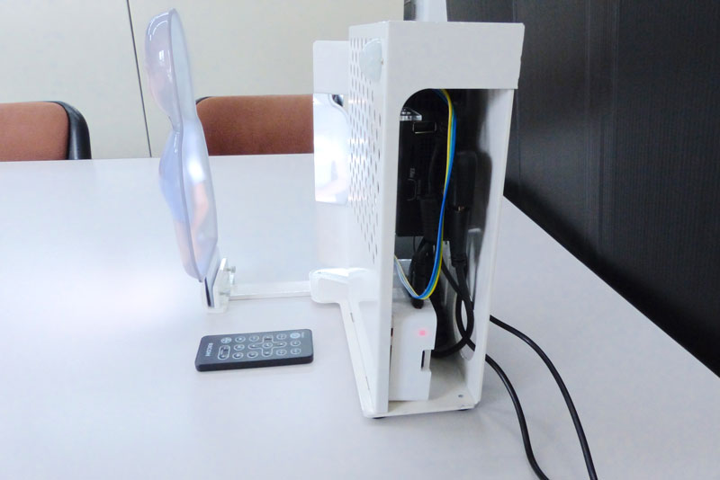ひとまわり大きくなり、存在感が増しました。24cmタイプと比較すると少し明るさが減りますが、十分明るく見られます。プロジェクターを反対向きに設置することで省スペースを維持できるように工夫しています。案内員としての活用の幅が広がりました。