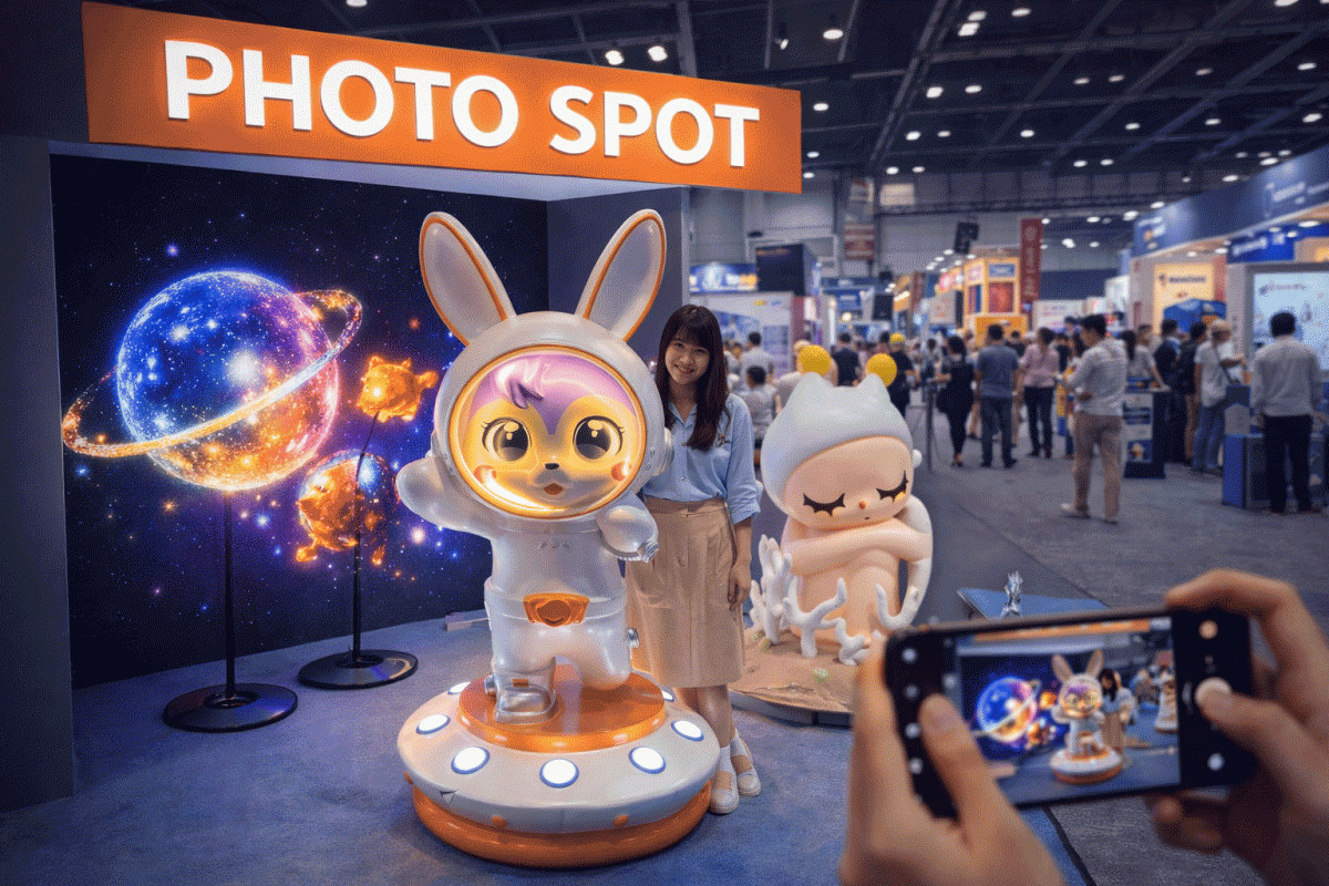 集客できるフォトスポット制作|LEDファン×映像×立体造形(FRP) 人が集まり、思わず撮影したくなるフォトスポットを制作します。 展示会・商業施設・イベントなど、SNS拡散を意識した空間演出にも対応しています。 ■ よくあるお悩み イベントで人を集めたい SNSで拡散される仕掛けを作りたい 写真を撮ってもらえるフォトスポットを設置したい こういったご希望に最適な演出をご提案します。 ■ LEDファンによる視線誘導 3DホログラフィックLEDファンは、強い視覚インパクトで来場者の目を引く演出が可能です。 展示会や店頭などで「足を止める装置」として非常に効果的です。 ■ スマホ撮影との相性について LEDファンは残像効果による映像表現のため、肉眼では美しく見えますが、 スマートフォンでの撮影には適していません。 そのため、フォトスポットの場合は別の手法を組み合わせることが重要になります。 ■ スマホ撮影に対応したフォトスポット(FRP立体造形) FRPによる立体造形は、実物として存在するためスマートフォンでもしっかり撮影できます。 キャラクター立体造形 商品モチーフの再現 ブランドの世界観演出 「撮れるフォトスポット」として、SNS拡散にもつながる演出が可能です。 ■ 屋外・イベント設置にも対応 屋外イベントや商業施設など、設置環境に応じた制作・設営にも対応しています。 サイズ・形状・設置方法なども含めてご提案可能です。 ■ LED×立体造形で“集客+撮影”を両立 LEDファンによる視線誘導と、FRP立体造形による撮影しやすさを組み合わせることで、 人が集まる(集客) 写真を撮る(体験) SNSで拡散される(広告) この3つを同時に実現できます。 ■ 映像制作との組み合わせも可能 LED演出を最大化するための映像制作・3DCG制作にも対応しています。 映像制作・3DCG制作の詳細はこちら ■ お問い合わせ フォトスポット制作・イベント演出についてお気軽にご相談ください。 お問い合わせ
